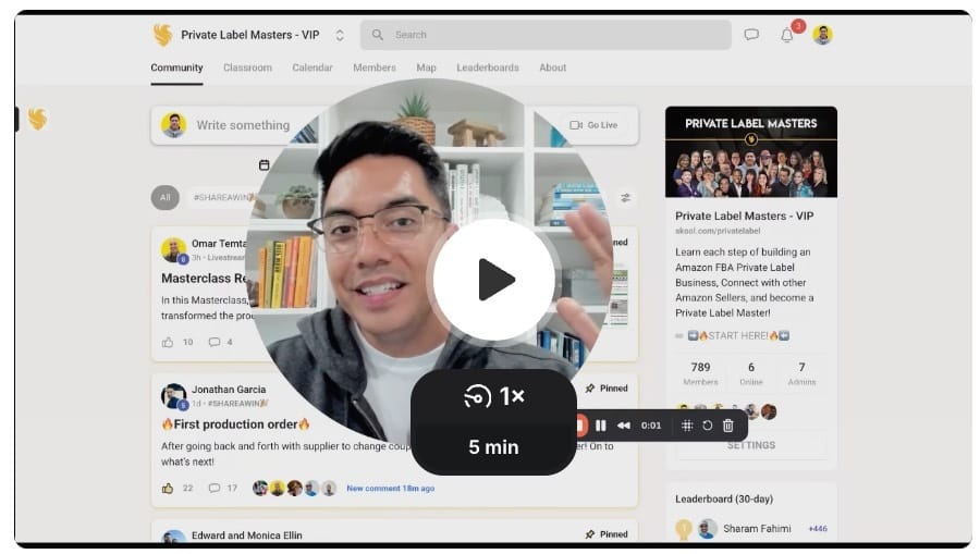 Inside his coaching and community, you’ll get his step-by-step system to build a profitable private label business. 3-5 live Q&A calls per week. A monthly masterclass on advanced growth strategies. A results driven community, and more.